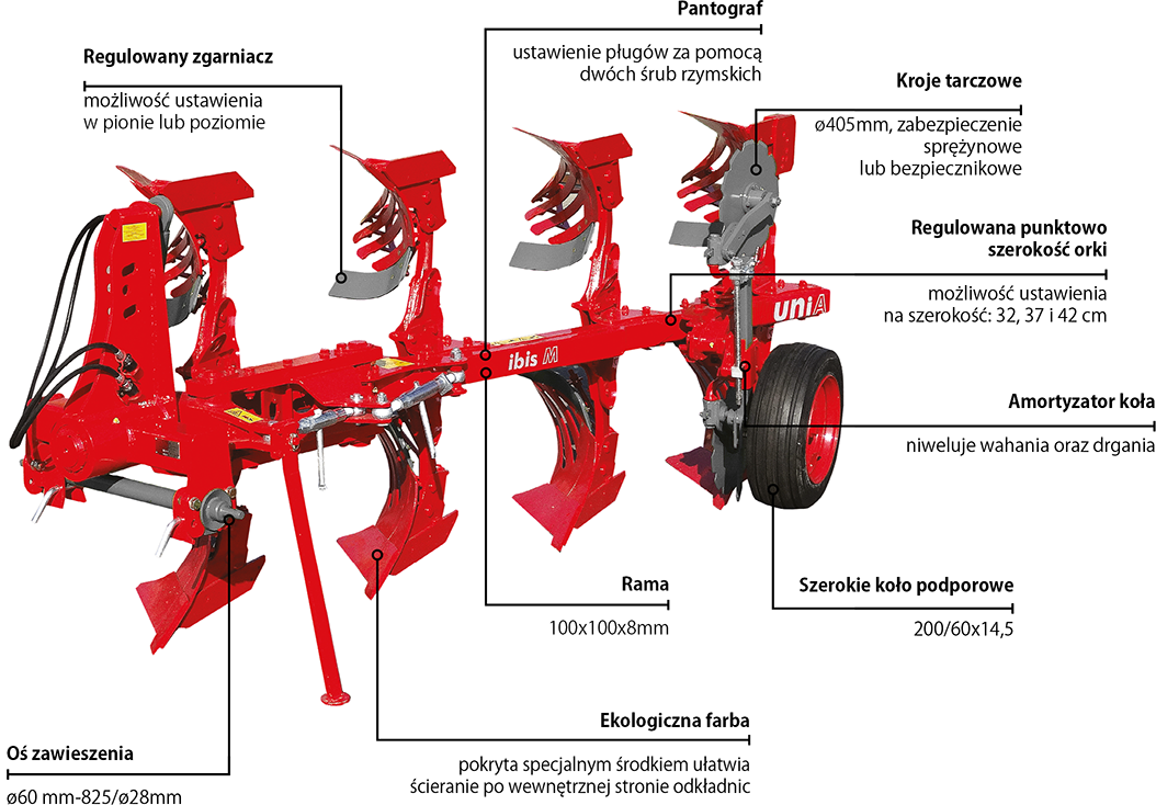 Плуги навесные двухсторонние IBIS M предназначены для тракторов мощностью 50÷110 л.с. для выполнения средней и глубокой беззагонной вспашки .