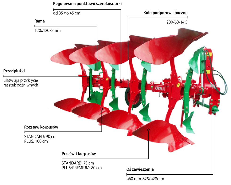 Оснащены корпусом МХ, характеризующимся малым сопротивлением во время вспашки, одновременно обеспечивающим точное покрытие пожнивных остатков.
